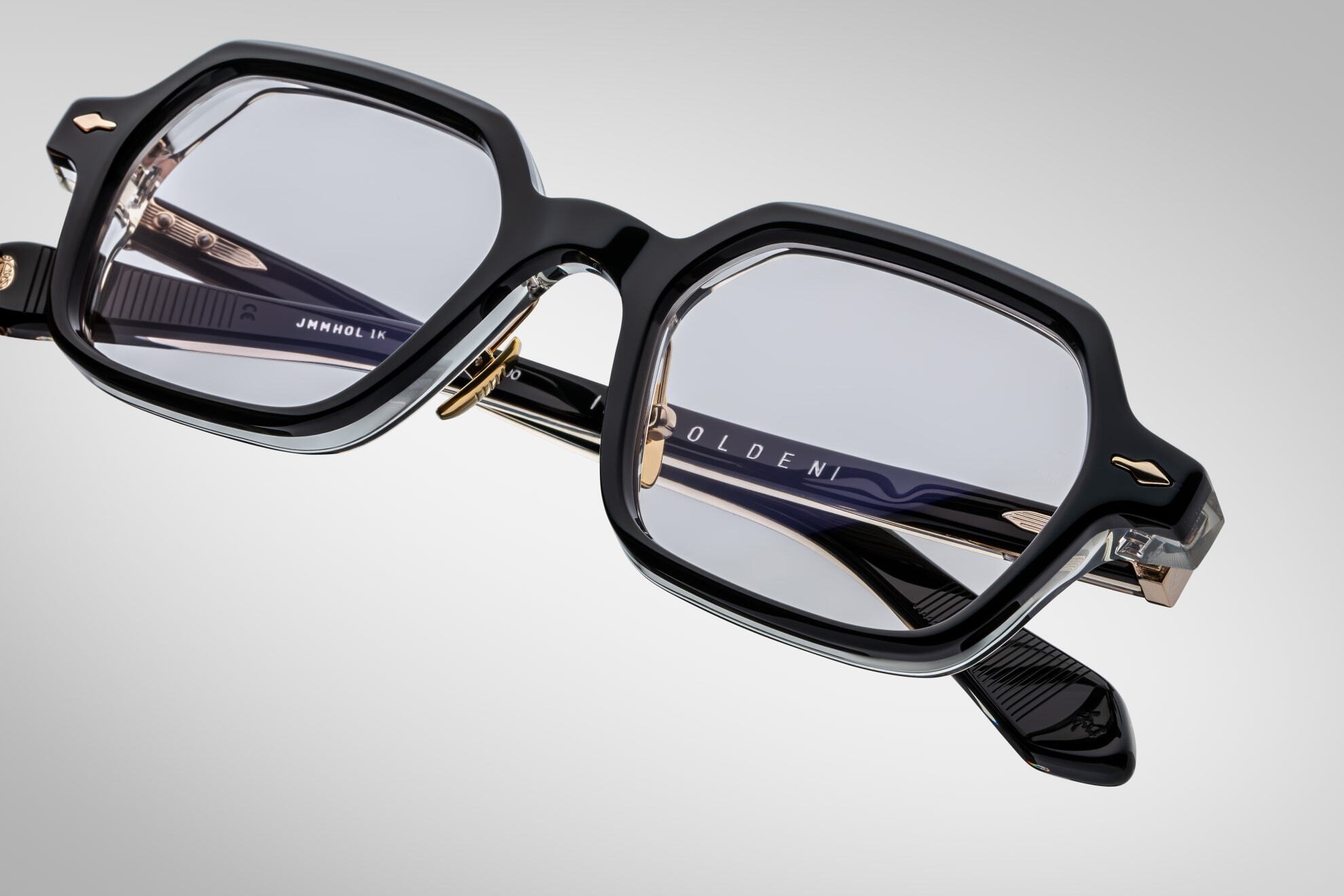 Hij combineert een scala aan rijke materialen, gewaagde geometrische vormen en een uitbundige houding om een onberispelijk vervaardigde bril te maken die historische motieven op elegante wijze toevoegt.
